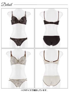 フロレゾンローズレース育乳脇高ブラジャー&サイド紐バック透けフルバックショーツ