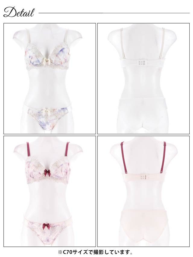 フロレゾンローズレース育乳脇高ブラジャー&サイド紐バック透けフルバックショーツ