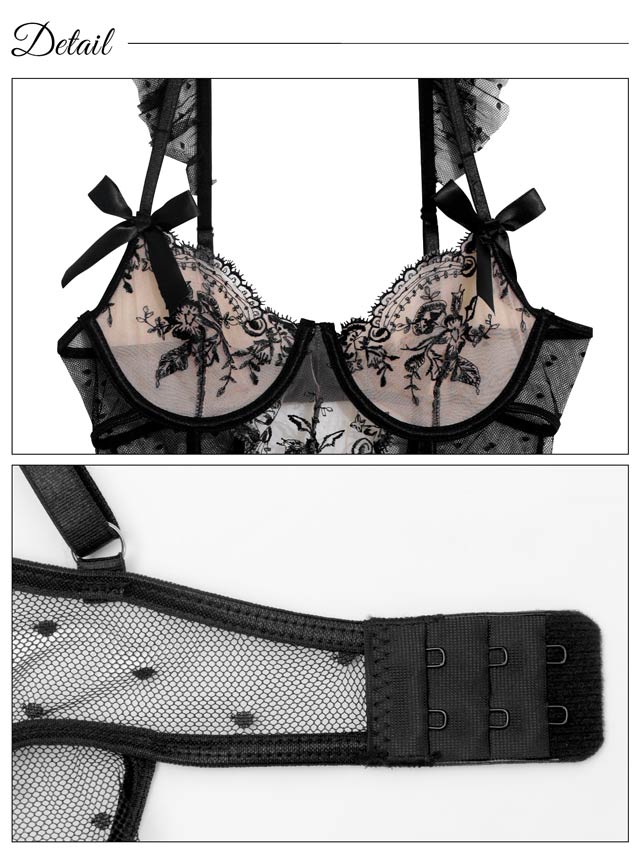 フロレゾンローズレース育乳脇高ブラジャー&サイド紐バック透けフルバックショーツ