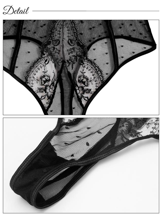 オールレースカットストリング育乳脇高ブラジャー&バック透けフルバックショーツ