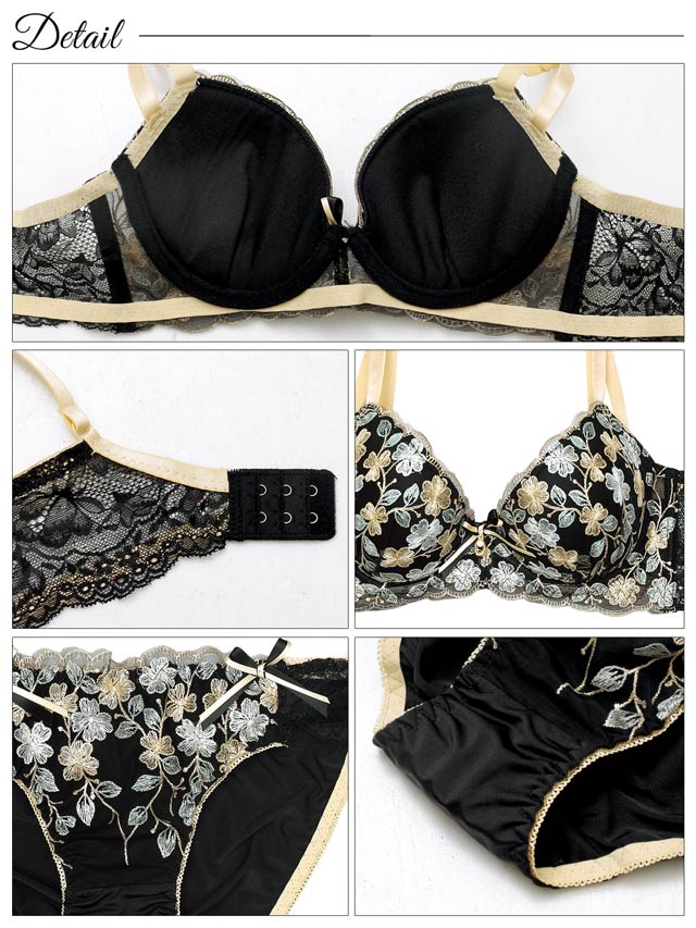 フロレゾンローズレース育乳脇高ブラジャー&サイド紐バック透けフルバックショーツ