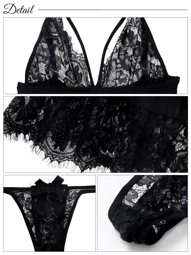 オールレースカットストリング育乳脇高ブラジャー&バック透けフルバックショーツ