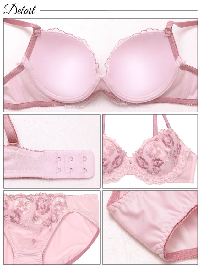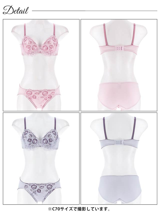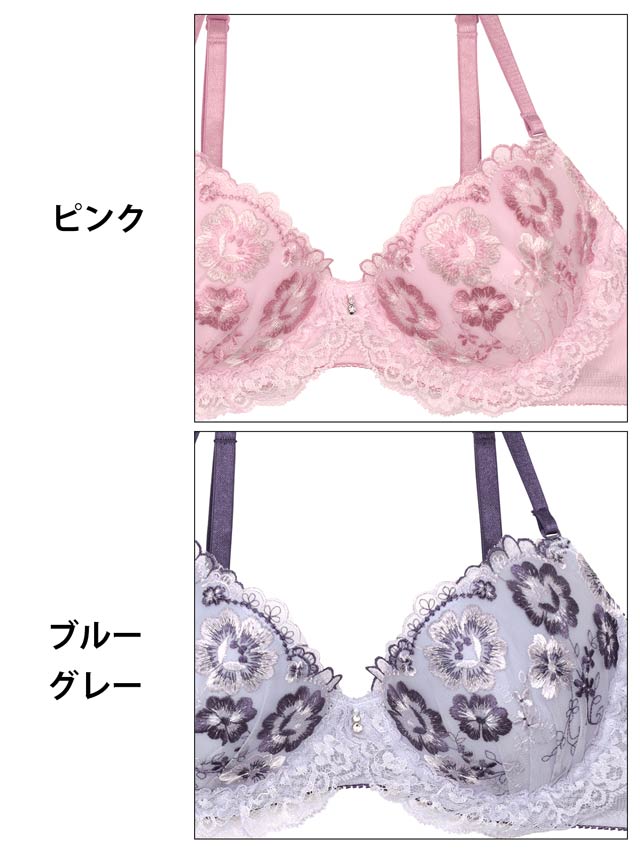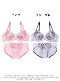 12/9再販!【EFサイズ】ダスティブルームエンブロイダリー育乳脇高ブラジャー&バック透けフルバックショーツ[大人気]