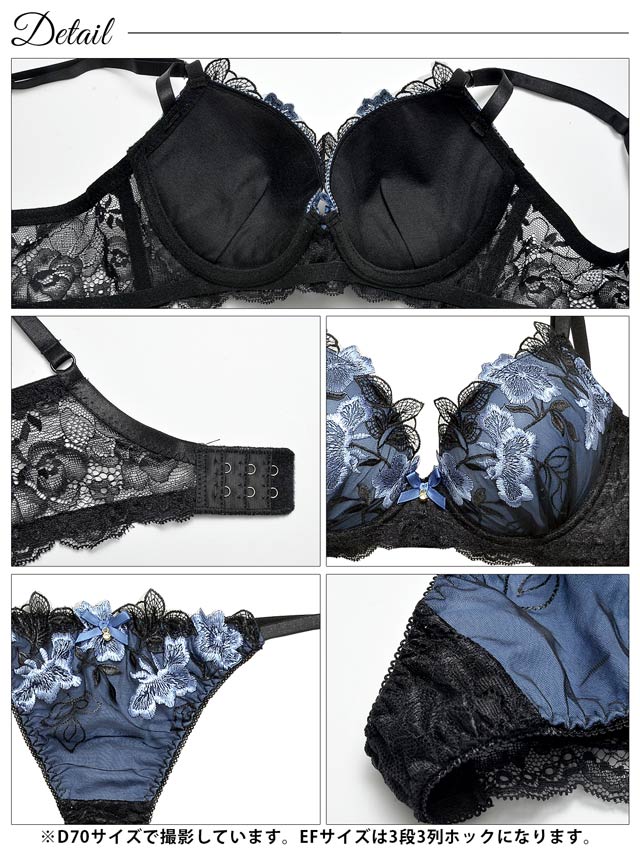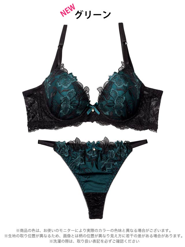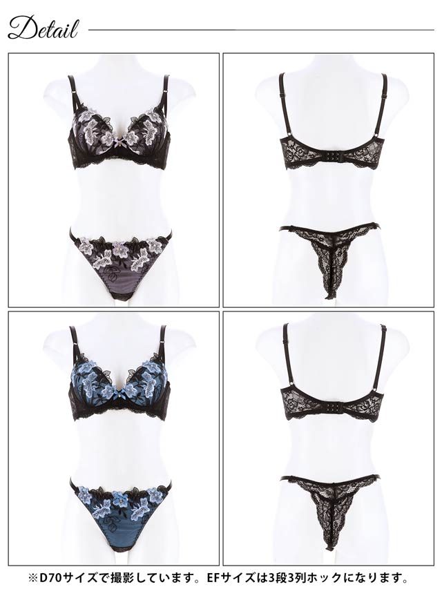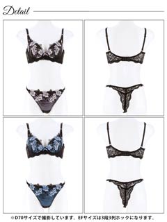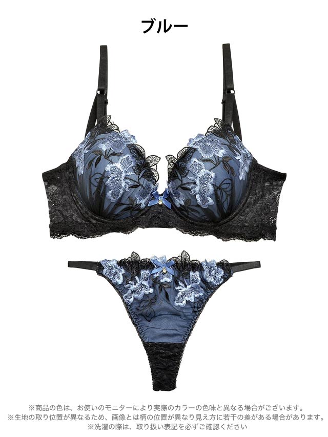 12/9再販!【EFサイズ】ダスティブルームエンブロイダリー育乳脇高ブラジャー&バック透けTバックショーツ[大人気]