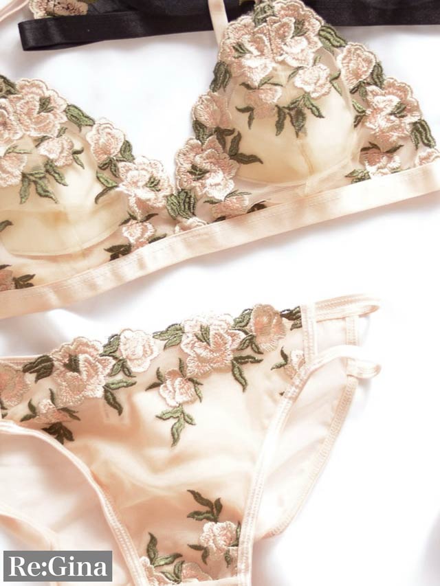 オールレースカットストリング育乳脇高ブラジャー&バック透けフルバックショーツ
