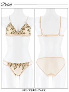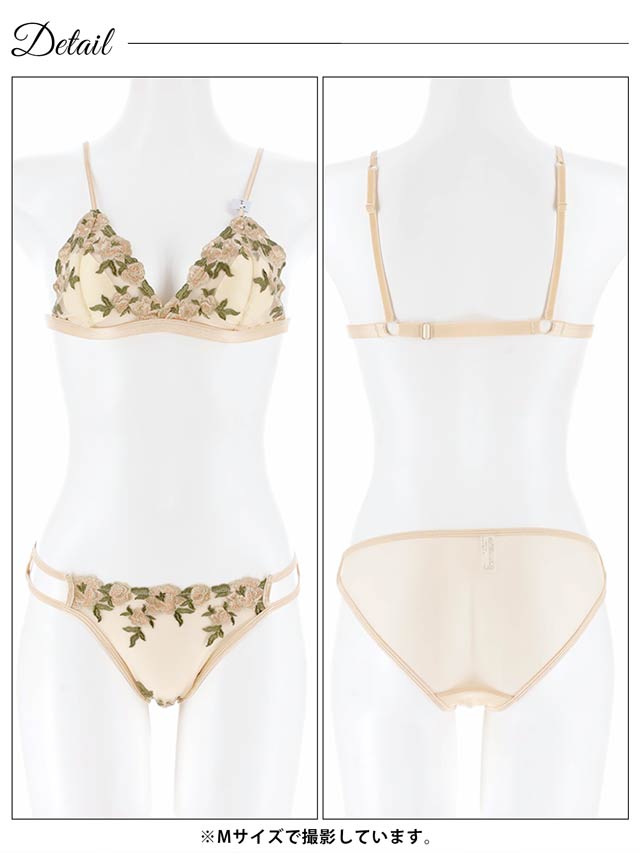 フロレゾンローズレース育乳脇高ブラジャー&サイド紐バック透けフルバックショーツ