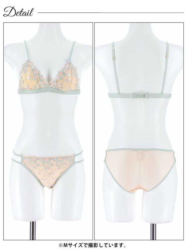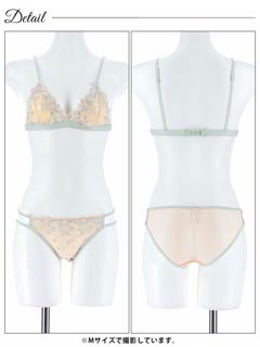 フロレゾンローズレース育乳脇高ブラジャー&サイド紐バック透けフルバックショーツ