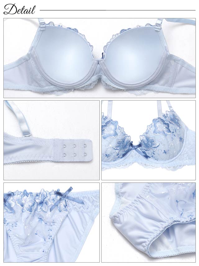 オールレースカットストリング育乳脇高ブラジャー&バック透けフルバックショーツ