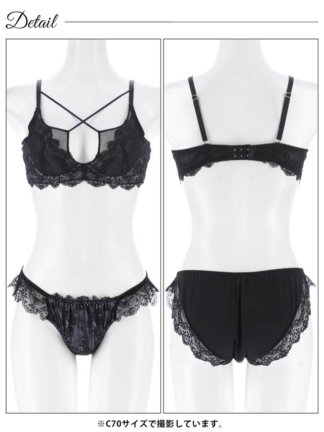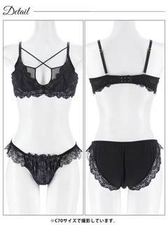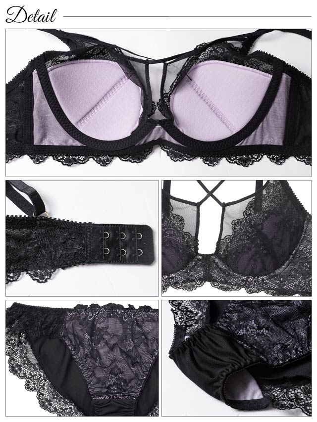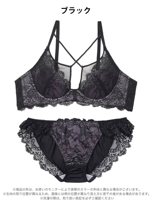 オールレースカットストリング育乳脇高ブラジャー&バック透けフルバックショーツ