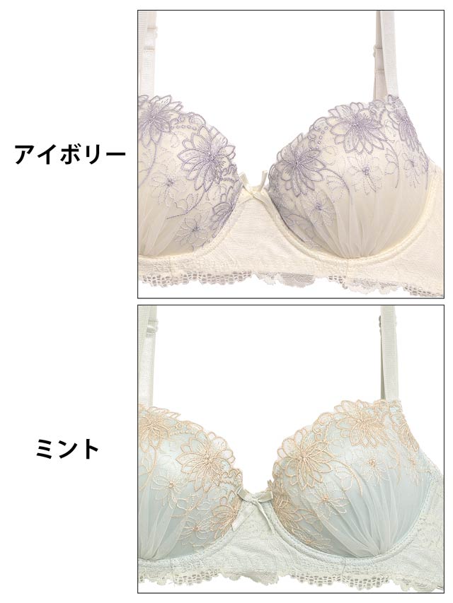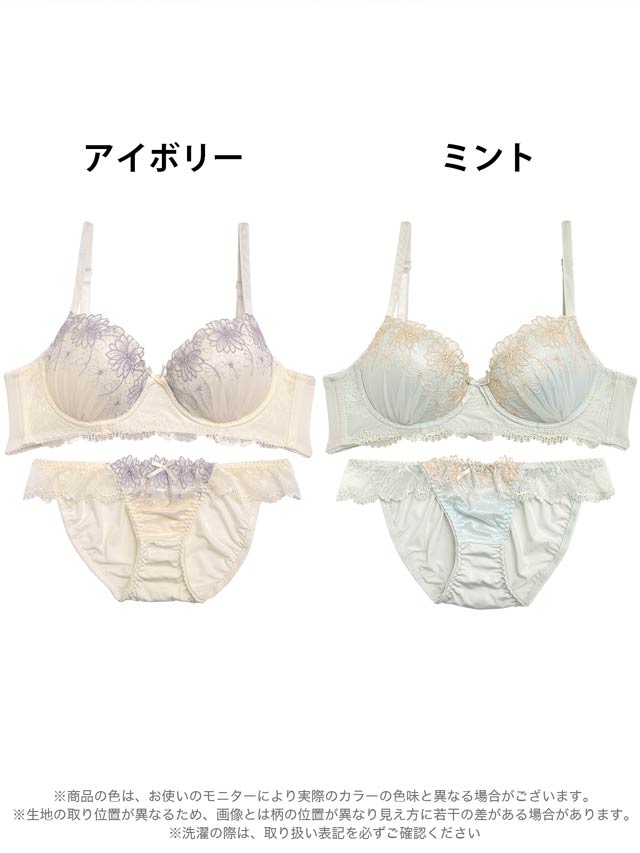 【ノンワイヤー】フェミニンパステルフィオーレ育乳脇高ブラジャー&フルバックショーツ[プチプラ]