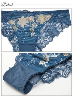 ロイヤルラメフラワー育乳脇高ブラジャー&バック透けフルバックショーツ[激売れ]