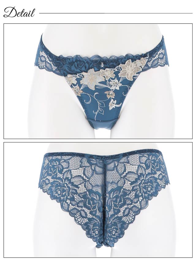 フロレゾンローズレース育乳脇高ブラジャー&サイド紐バック透けフルバックショーツ
