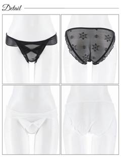 オールレースカットストリング育乳脇高ブラジャー&バック透けフルバックショーツ