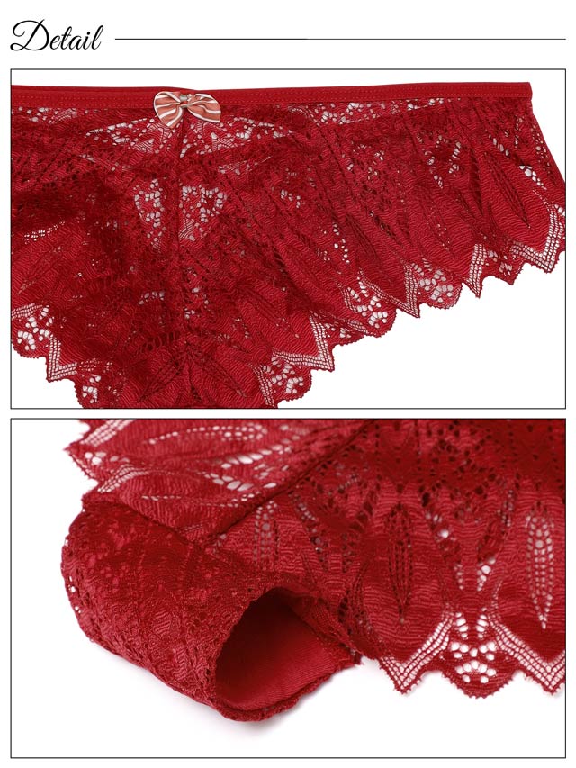 オールレースカットストリング育乳脇高ブラジャー&バック透けフルバックショーツ