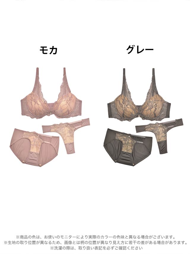 オールレースカットストリング育乳脇高ブラジャー&バック透けフルバックショーツ