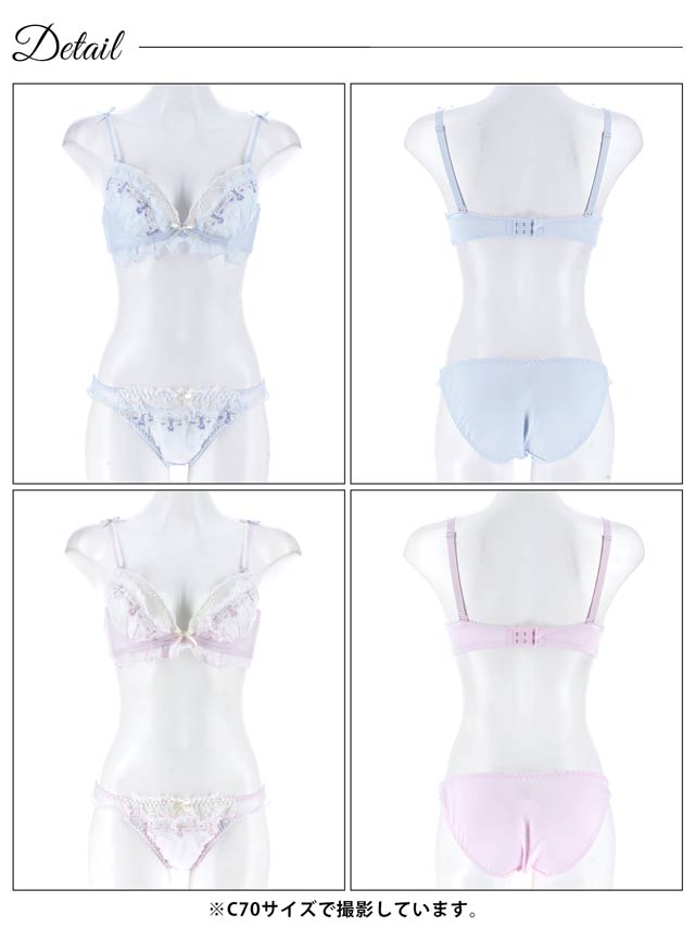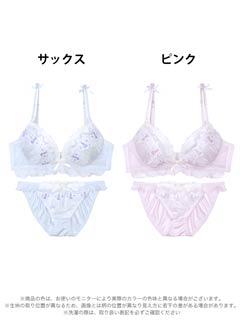 ダスティブルームエンブロイダリー育乳脇高ブラジャー&バック透けフルバックショーツ