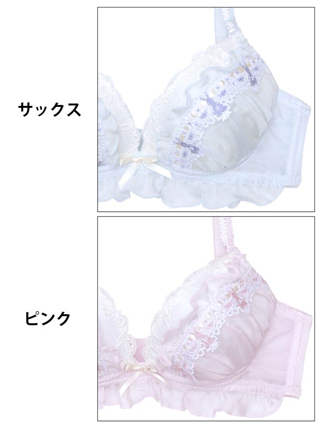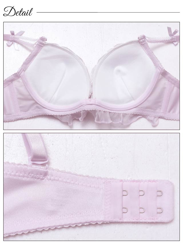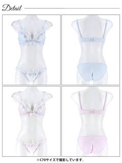 ガーリーフリルレーシィコード育乳脇高ブラジャー&バック透けフルバックショーツ