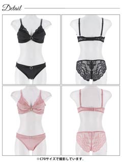 9/11再販!リボンリングビジューレースブラジャー&バック透けフルバックショーツ[激売れ][週替][スーパーセール]