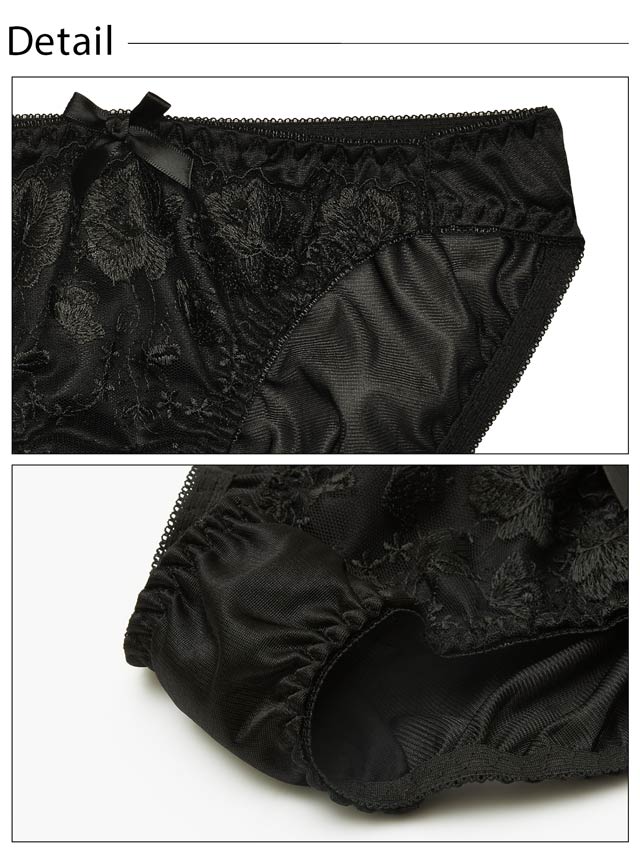ワンカラーリッチレースブラジャー&フルバックショーツ