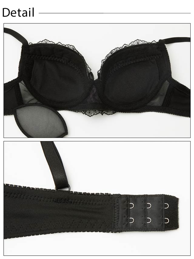 オールレースカットストリング育乳脇高ブラジャー&バック透けフルバックショーツ