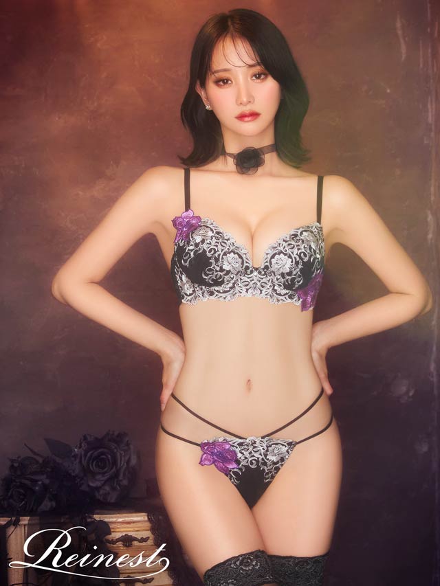 9/17再販!【永尾まりや着用】【Reinest】ロイヤルアイビーローズブラジャー&バック透けフルバックショーツ[大人気]