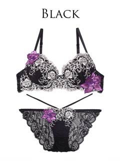 【三上悠亜着用】クラシックモダンローズコード育乳脇高ブラジャー&サイド紐バック透けフルバックショーツ[激売れ]