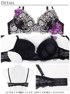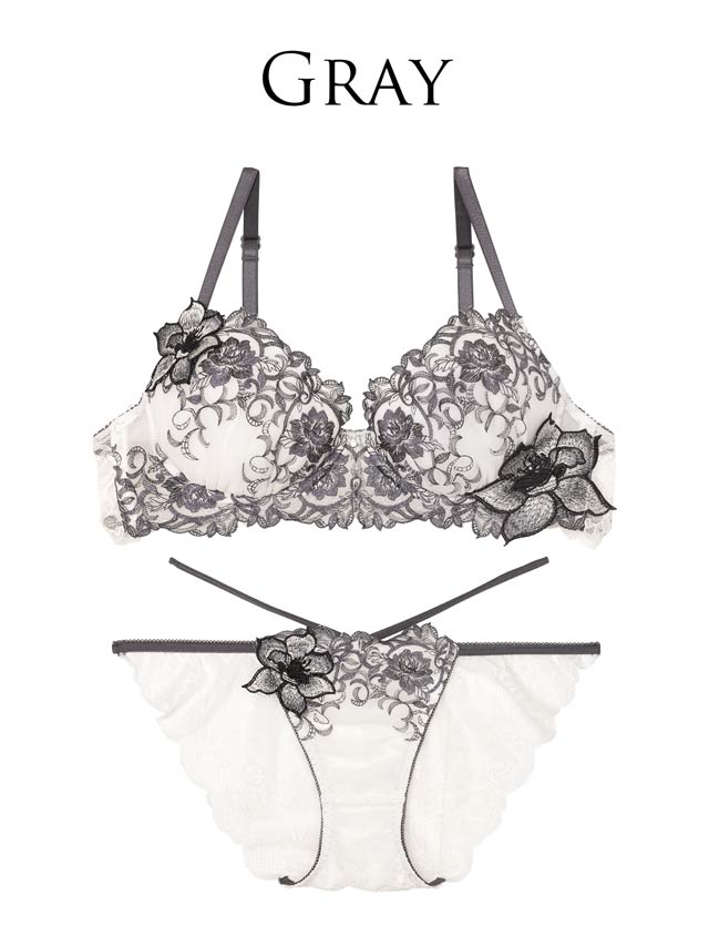 ダスティブルームエンブロイダリー育乳脇高ブラジャー&バック透けフルバックショーツ