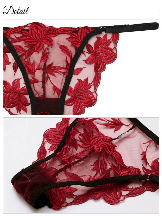 オールレースカットストリング育乳脇高ブラジャー&バック透けフルバックショーツ