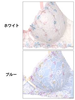 フロレゾンローズレース育乳脇高ブラジャー&サイド紐バック透けフルバックショーツ