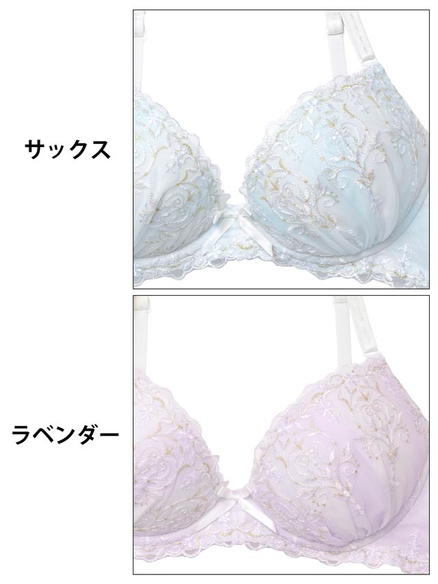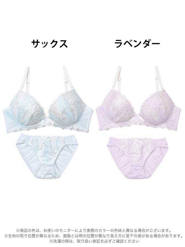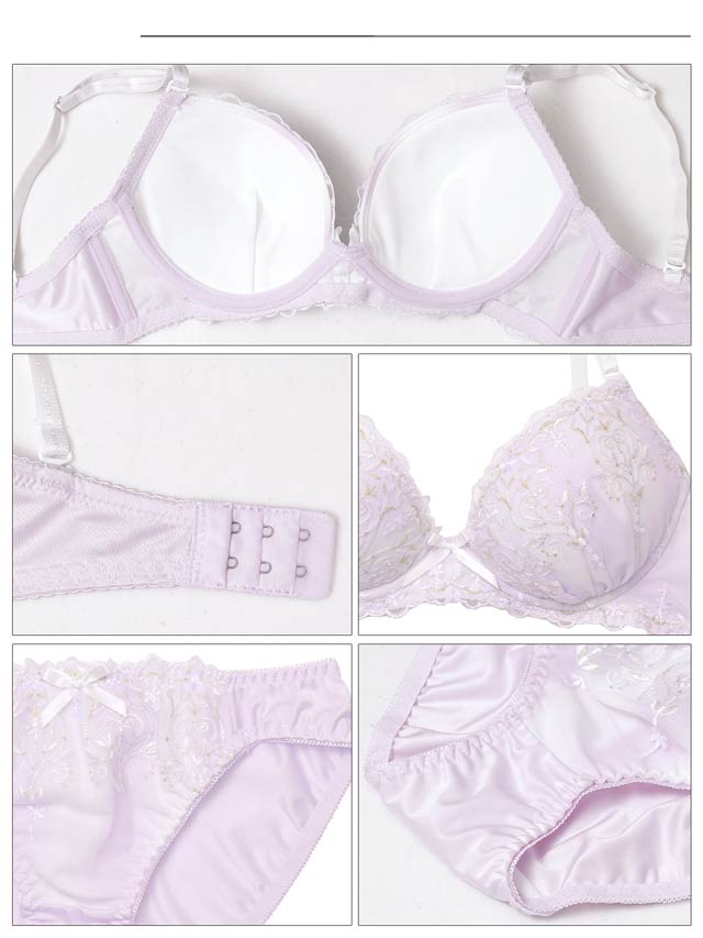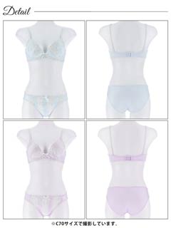 ダスティブルームエンブロイダリー育乳脇高ブラジャー&バック透けフルバックショーツ