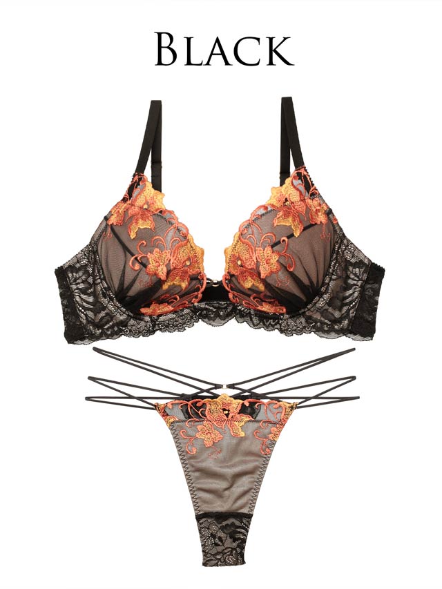 9/30再販!【永尾まりや着用】【Reinest】シックブロッサムコードブラジャー&バック透けTバックショーツ[大人気]
