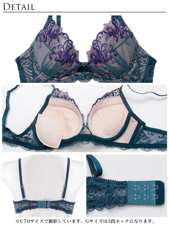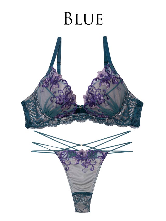ダスティブルームエンブロイダリー育乳脇高ブラジャー&バック透けフルバックショーツ