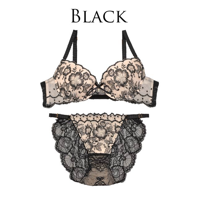 紐パン付フラワーガーデンシフォンブラジャー&ショーツ/CUTE