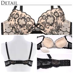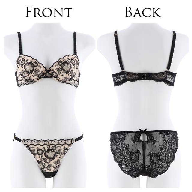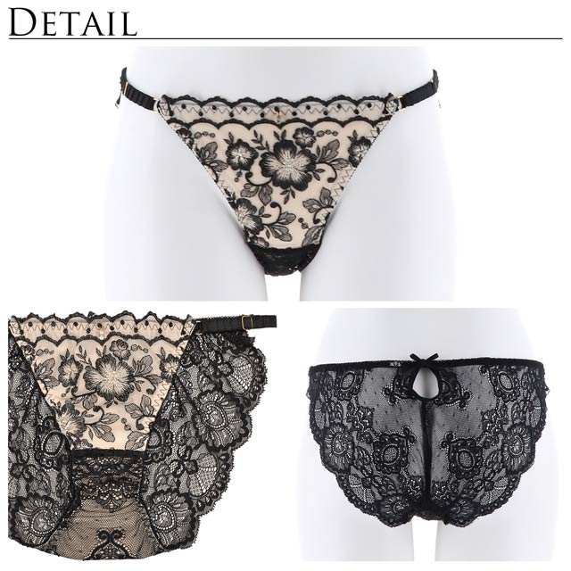 フロレゾンローズレース育乳脇高ブラジャー&サイド紐バック透けフルバックショーツ