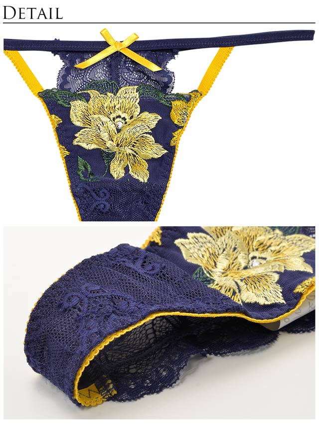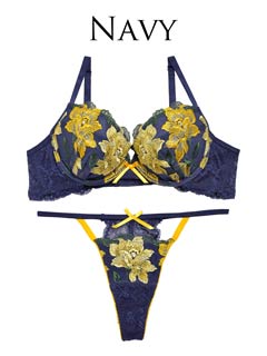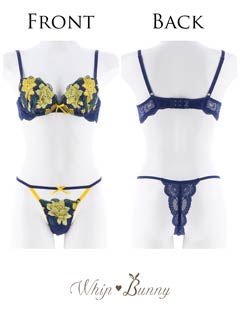 【明日花キララプロデュース/WhipBunny】ラグジュアリーブルームローズブラ&Tバック / ネイビー