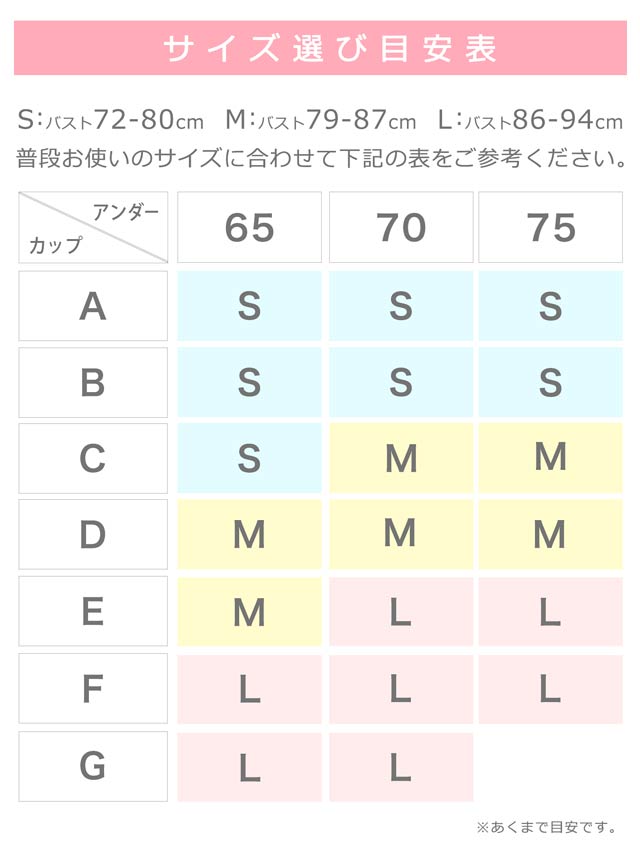 ブラジャーのサイズ表
