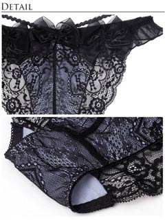 オールレースカットストリング育乳脇高ブラジャー&バック透けフルバックショーツ