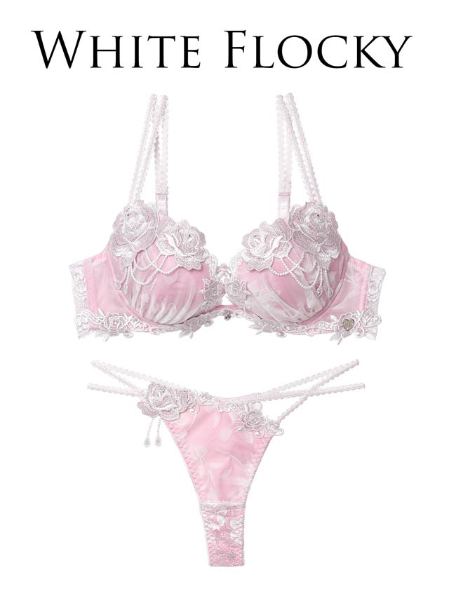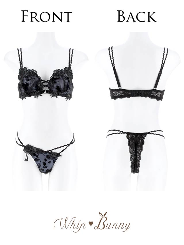 10/24新作!【明日花キララプロデュース/WhipBunny】Noble Flocky Rose Bra&T-back / ノーブルフロッキーローズブラ&Tバック