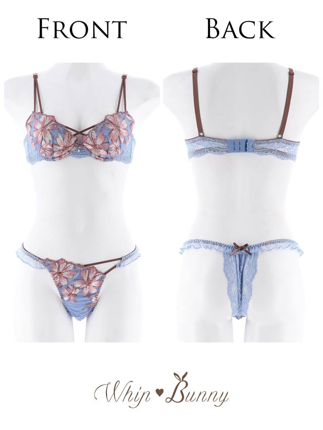 【明日花キララプロデュース/WhipBunny】フレッシュガーベラエンブロイダリーブラ&Tバック / サックス