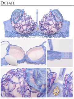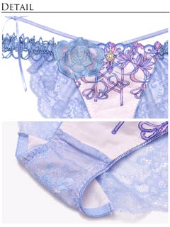 フロレゾンローズレース育乳脇高ブラジャー&サイド紐バック透けフルバックショーツ