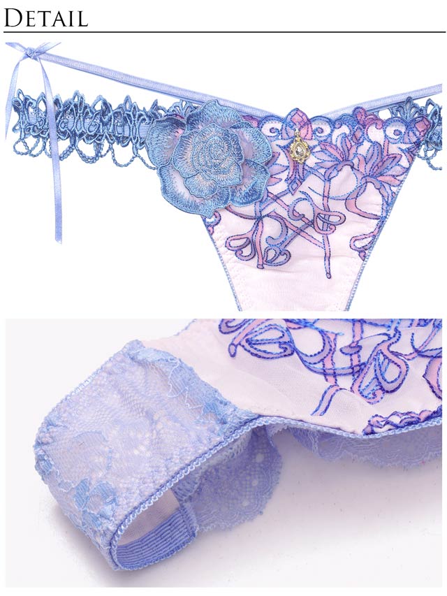 ダスティブルームエンブロイダリー育乳脇高ブラジャー&バック透けフルバックショーツ