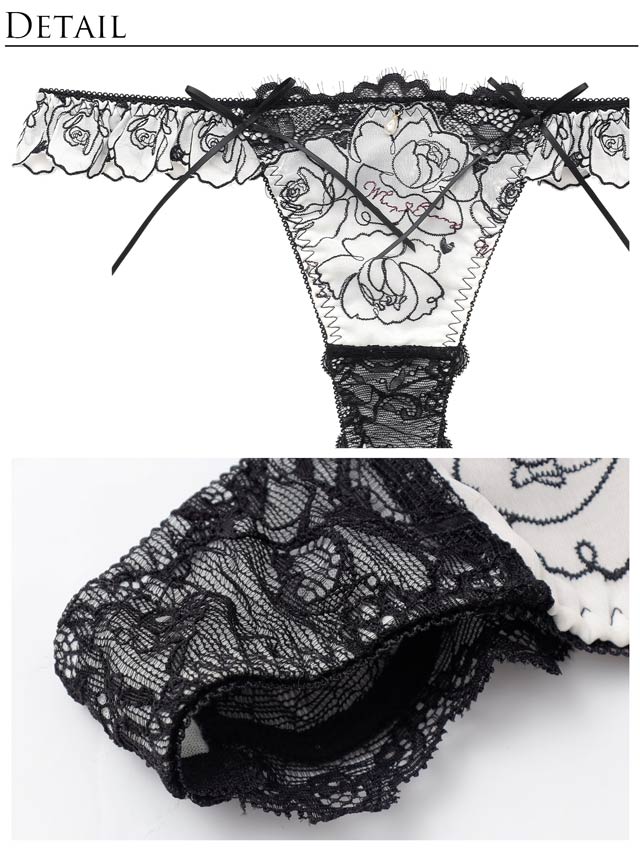 ショーツのサイドにも刺繍レースのフリルをふんだんに使用した、かわいいだけじゃなくて日常使いもしやすいショーツです!毎日着たくなるランジェリー、必ずGetしてくださいね!