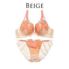 【明日花キララプロデュース/WhipBunny】 ヌーディーフローラルエンブロイダリーブラ&ショーツ / ベージュ