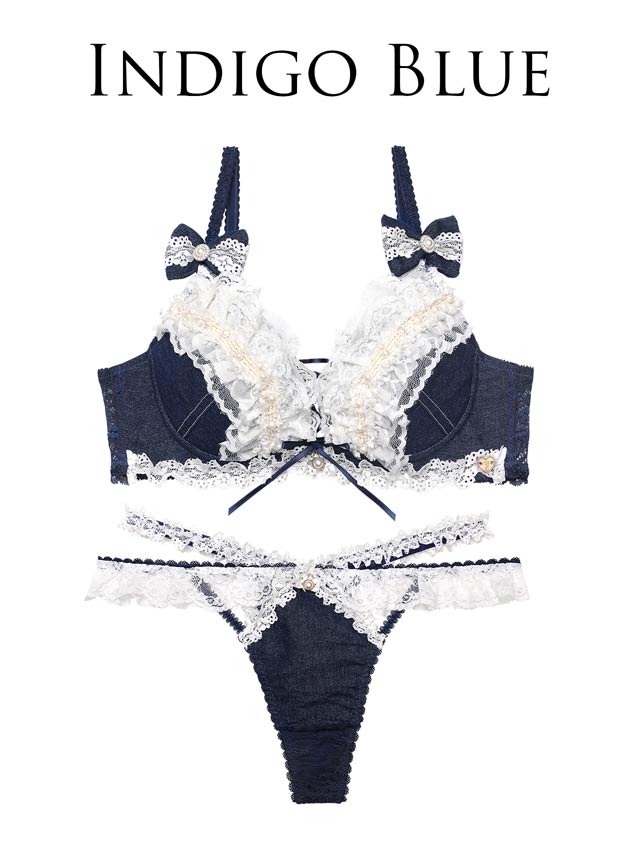 【明日花キララプロデュース/WhipBunny】Lacy Tiered Denim Bra&T-back / レーシィティアードデニムブラ&Tバック[週替][スーパーセール]