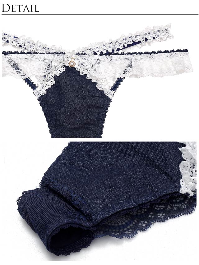 オールレースカットストリング育乳脇高ブラジャー&バック透けフルバックショーツ