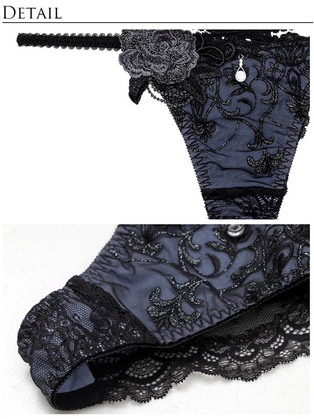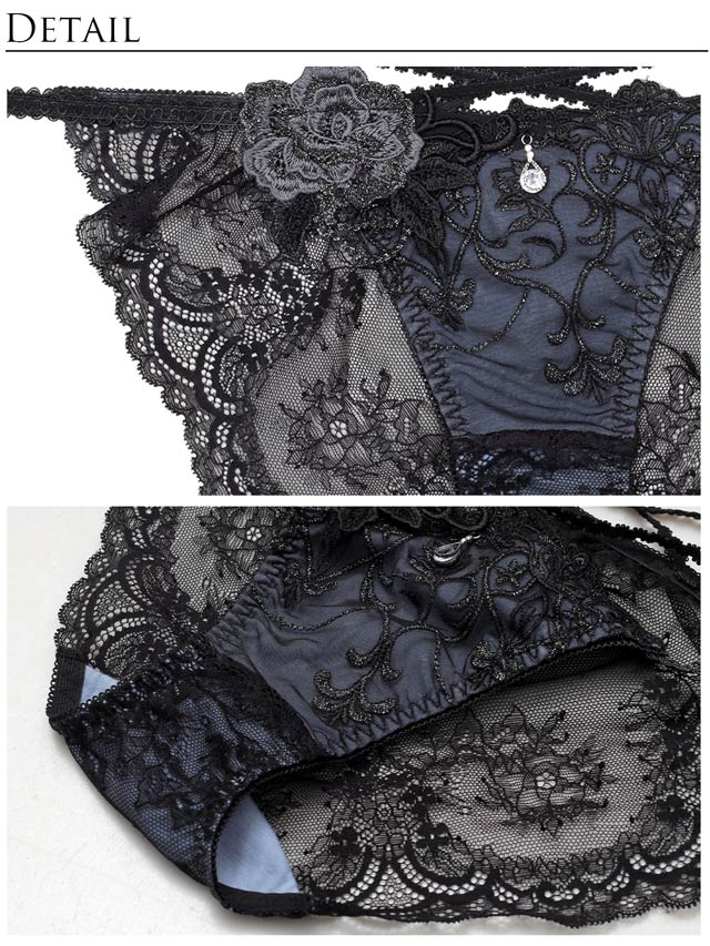 ダスティブルームエンブロイダリー育乳脇高ブラジャー&バック透けフルバックショーツ