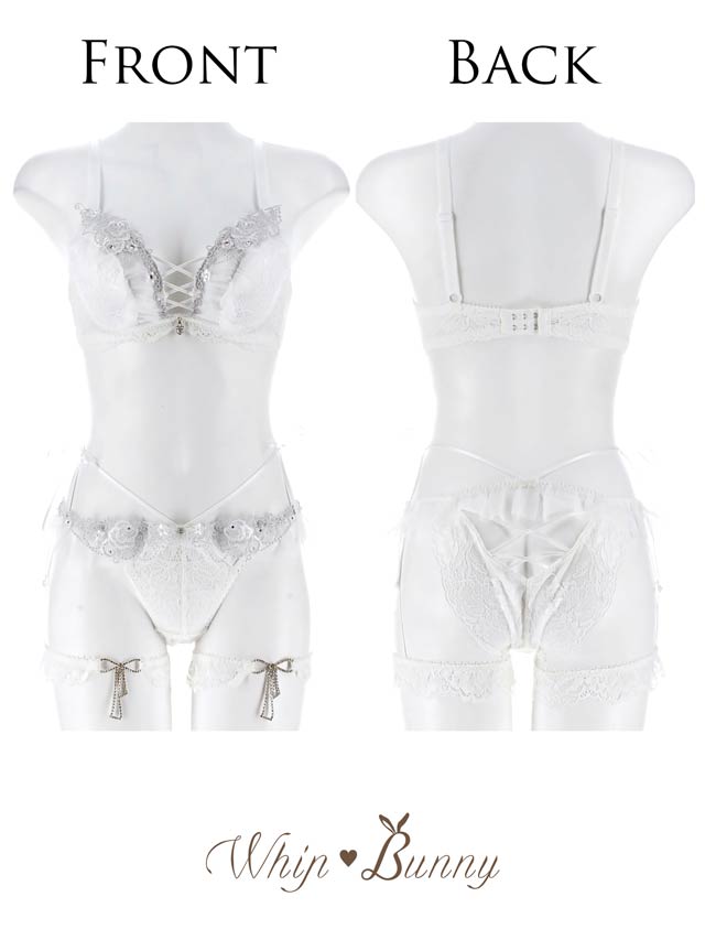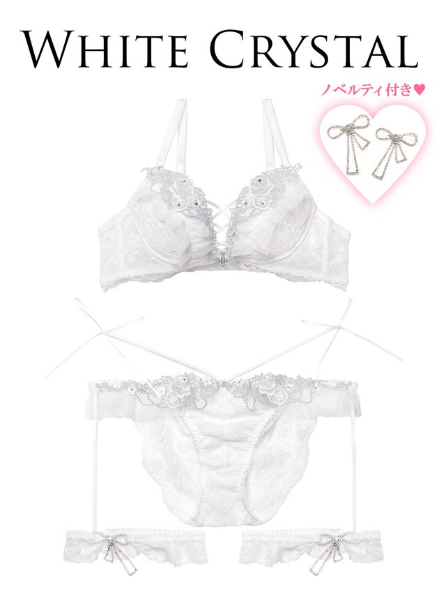 大人気の クイーンローズビジューシリーズ(品番:3c98042)から純白のホワイトカラーが登場!ビジューをたくさん散りばめた華やかでドレッシーなランジェリー!
