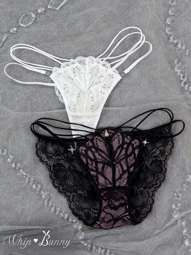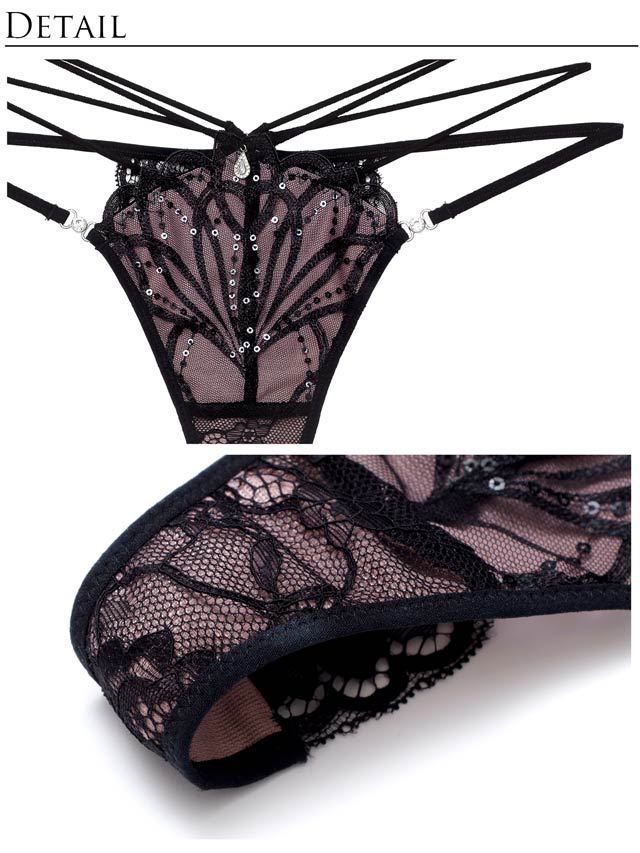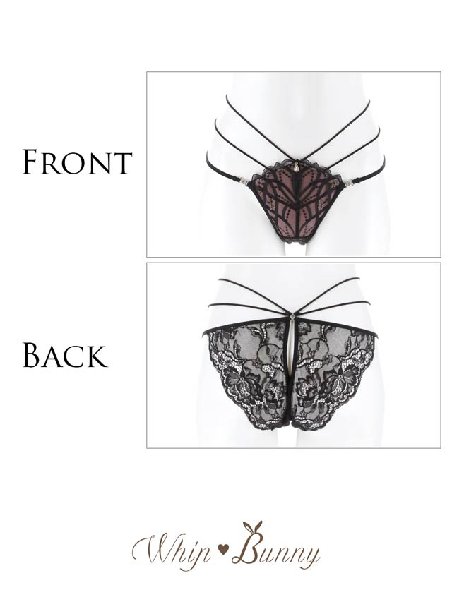 オールレースカットストリング育乳脇高ブラジャー&バック透けフルバックショーツ