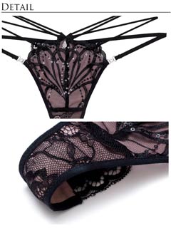 1/17再販!オールレースカットストリング育乳脇高ブラジャー&バック透けフルバックショーツ[激売れ]