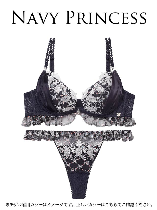 立体感のあるラメシフォンと、カップ上辺に輝くラインストーンが目を惹くお姫様気分のランジェリー!